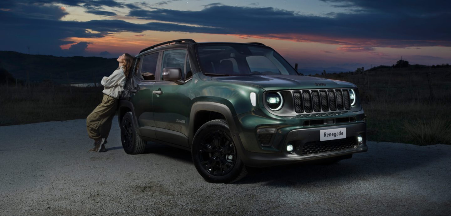 Consommation de carburant Jeep® Renegade E-hybrid (l/100 km) : 5,6 - 5,7 ; émissions de CO2 (g/km) : 125-129. Valeurs définies selon le cycle combiné WLTP. Valeurs mises à jour en octobre 2024 et indiquées à titre comparatif. Les valeurs réelles de consommation de carburant et d'émissions de CO2 peuvent être différentes et varier en fonction des conditions de conduite et de divers facteurs.